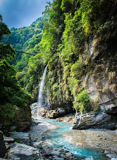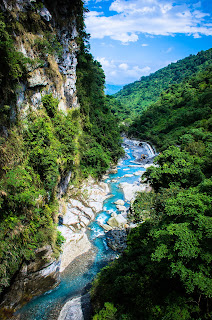 看到溪谷湛藍色的溪水,真想立馬跳下水去玩XD